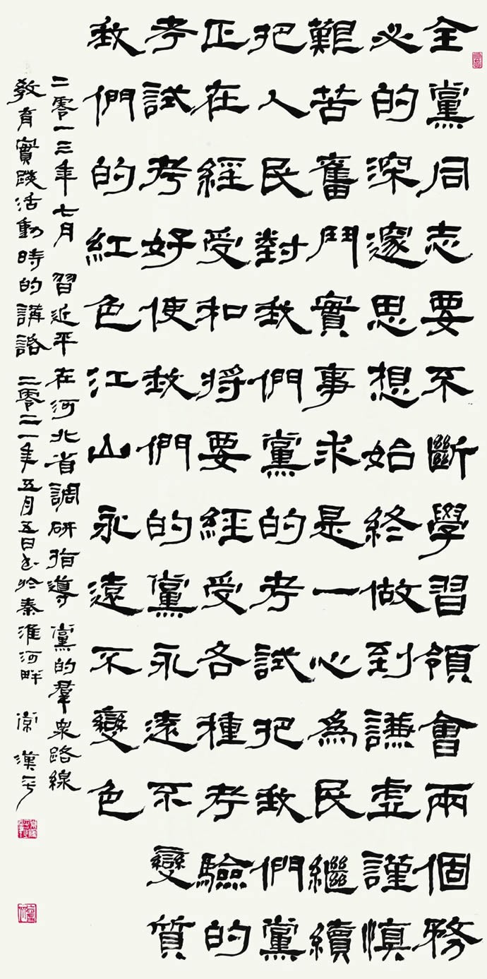 该展览的作品自去年8月开始向全省征集,共有275件美术作品,83件书法作品进入评审。最终评选出77件美术作品、39件书法作品与特邀48件作品一起进入展览。参展作品全景式、多角度地再现了百年党史中的重要节点、重大事件、典型人物,展现了中国共产党走过的光辉历程和建立的不朽功勋,体现了思想性、主题性和艺术性的结合。