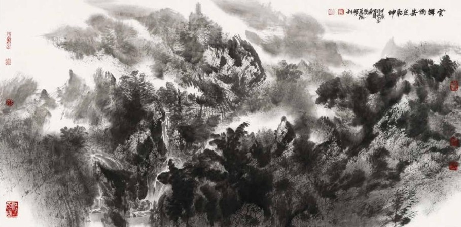 黄格胜、胡宝利、左剑虹、陈芳桂四位当代著名山水画家联袂而至,追踪宗炳的足迹,从今年五月开始,走进衡山,游历雁城,潜心写生,将花海的盛夏,云海的仲秋,古寺的钟声,飞瀑的轰鸣,一一收入草稿。通过写生,他们把衡阳的自然美景与历史人文以各具魅力的个性化笔墨表达岀来,或气势磅礴,或清新豪迈,或苍茫朴厚,或秀韵天成,画家们把一腔对寿山雁城的深情,化作了大美衡阳的时代画卷。