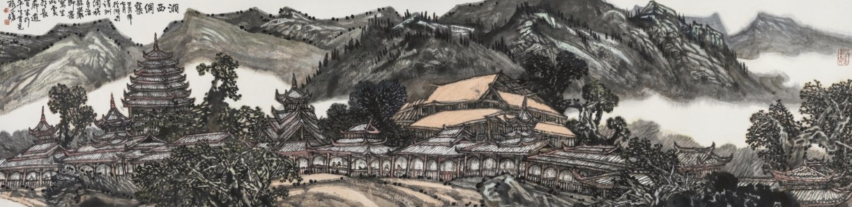 纵观中国山水画史,以南岳衡山为题材的寿意山水画是一个延续千年的不朽主题。自宋代开始,素为文人画家喜爱的“潇湘八景”,其中就有“平沙落雁”“山寺晚钟”两幅南岳山水。明代山水画家更是开启了南岳七十二峰的山水画长卷模式;至清代以降,画家们纷纷取材南岳,持山作寿,形成一种风气,四王、石涛皆有佳作。