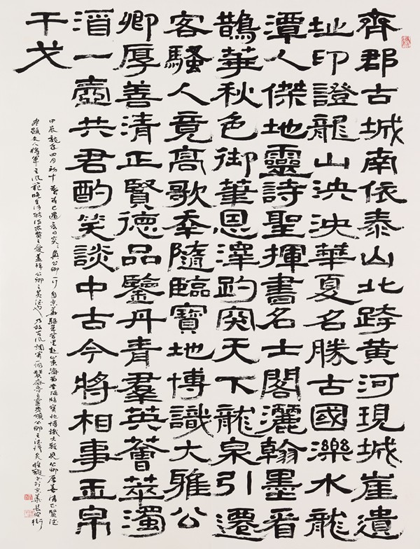 怀馥,根植传统,崇尚经典,立足时代,志存高远,在创作上追求诗书画印的“四融”之功。他出生于上世纪80年代的广东,深受岭南祠堂文化的影响,自幼好习传统,以古为师,精研古典诗词格律,创作上以古体诗、格律词为主;在书法研习创作时,上承古风,立足传统,追求正大气象的书法风格,注重线条的表现形式,强调书写性和文化性,近阶段发轫于秦简牍书、汉篆碑刻等书学方向,着力于对厚重朴茂的追寻,细致而敏感地发掘、发挥其线条的转化之功,并能够与绘画创作相融合。