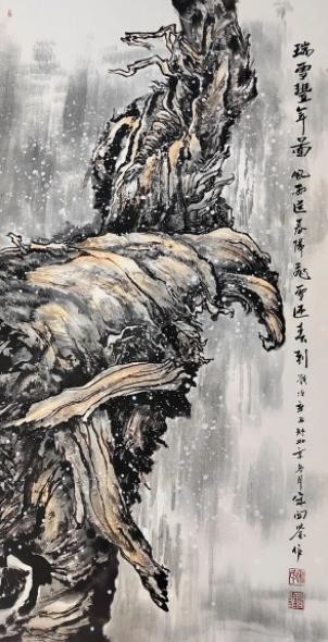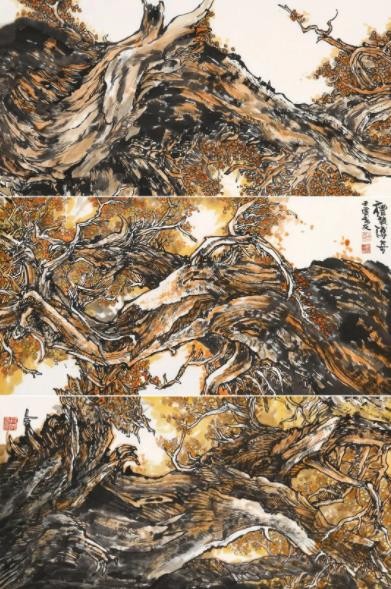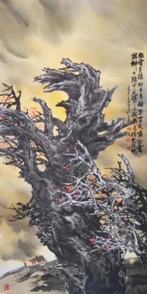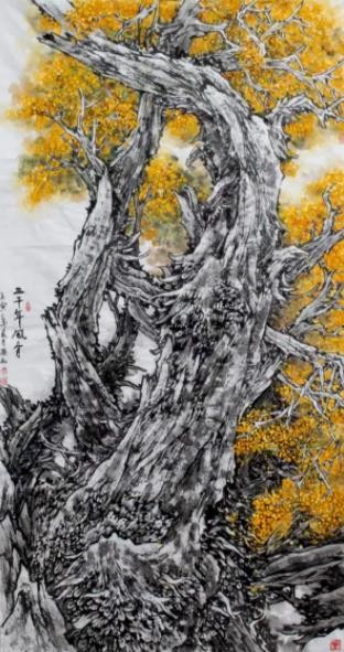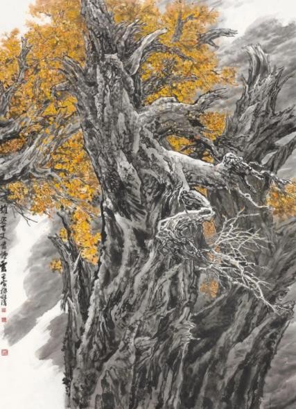荣宝斋画院迎来了每年一度的毕业季。用已经成为教学研究课题的胡杨绘画艺术,向荣宝斋画院汇报,回报于社会,我们以赞美胡杨生命的光辉为主题,筹备了此次展览。胡杨不死、不倒、不朽,三个千年的传奇激励着人们所遇千辛万苦,要像胡杨大树一样坚强站立。从来没有一种树生来就是无边的盐碱,在贫瘠的沙土地上展开一生的绝望,满身疤节的躯干,粗粝斑驳的树皮,高大的身躯,屹立守望,把世间所有困厄紧紧锁在根下,把满目苍翠倾向天空,把金黄奉献给大地。乘物游心,借物传情,以胡杨为载体,传达美好是精神向上的动力,胡杨不仅是一个绘画题材的潜在力,也是中国画一个画种未来的潜在力,更是胡杨精神意义的人文情怀。梅兰竹菊,都以极高的艺术品质成为文人雅士品评人格的象征,胡杨的人文情怀是以生命意义的象征而展开,走进殿堂,走进千家万户,细雨润无声的给人们以坚强无畏,战胜一切困难的精神和力量。文化自信,民族自信的发展进程是文化艺术的推动力,而胡杨精神则是不可替代的,勇往直前的生命力量。深信在坚持不懈地研究创作的过程中定呈现出别样的胡杨,别样的表现形式,别样的艺术感染力。