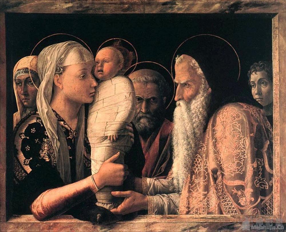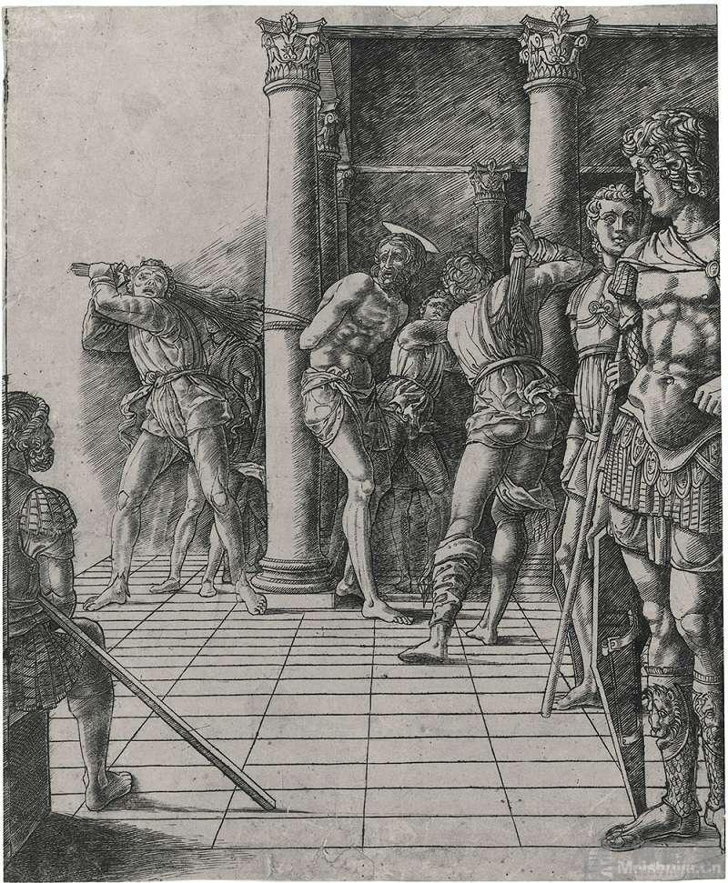 Andrea Mantegna(1431-1506)是意大利北部地区的文艺复兴画家与版画家,长期担任曼托瓦(Mantua)地区 Gonzaga 家族的御用画师。他尝试从低视角作画,创新运用透视法,营造出场面宏大的视觉效果。