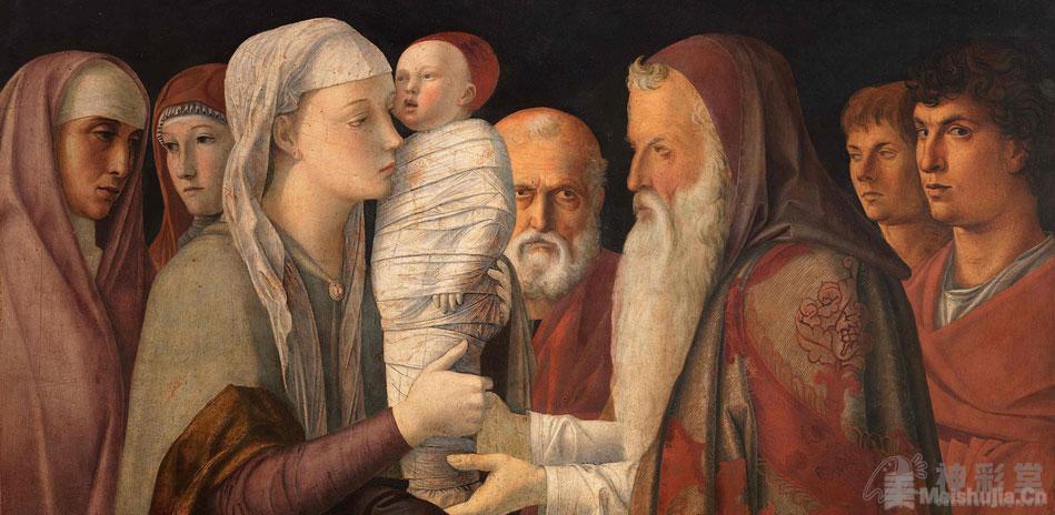 1453年 Mantegna 与 Bellini 的姐姐结婚,两名文艺复兴画家在艺术上的交流机会因此增加,Mantegna 对古希腊罗马时期文物的浓厚兴趣影响了妹夫 Bellini 的早期创作,而 Mantegna 也受到 Bellini 绘画风格的影响。尽管1460年之后 Mantegna 前往曼托瓦地区生活,但从作品可以看出,两人依然保持交流。
