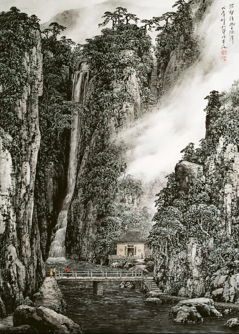 溪口镇为民国文化第一镇,雪窦山乃中国佛教五大名山。这里是一个人文景观与秀美山川完美结合的海内外少有的旅游胜地,常年游客如云,十分需要全景式展示溪口独特魅力的美术作品,提供给溪口的中外游客。我作为一名土生土长的奉化画家,自然责无旁贷,于是,历经五年的默默磨炼,完成了70余幅叙述溪口的作品。2009年,我的第二本“为家乡”的作品集《溪口墨韵》付梓面世。