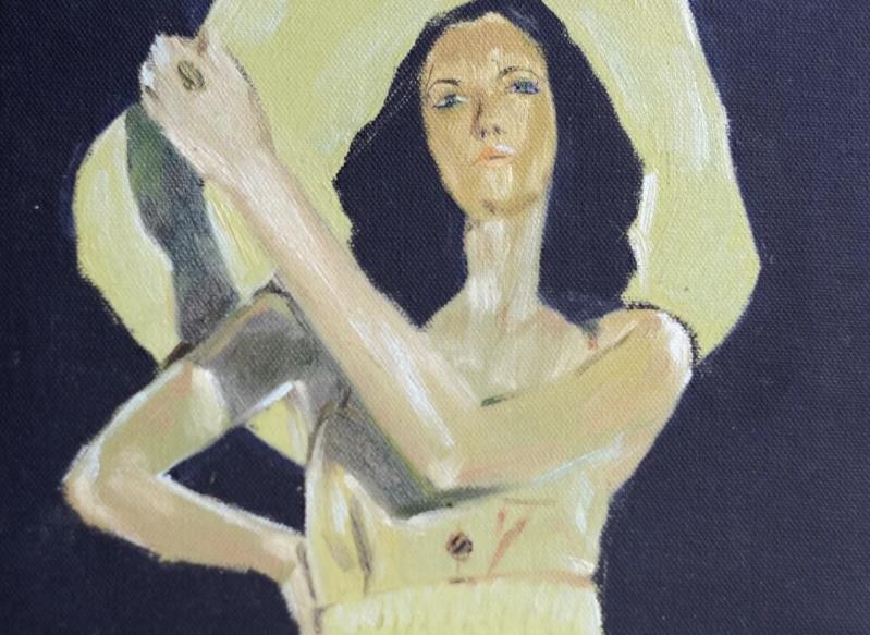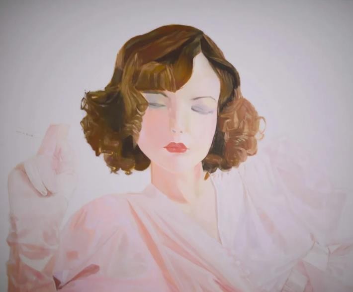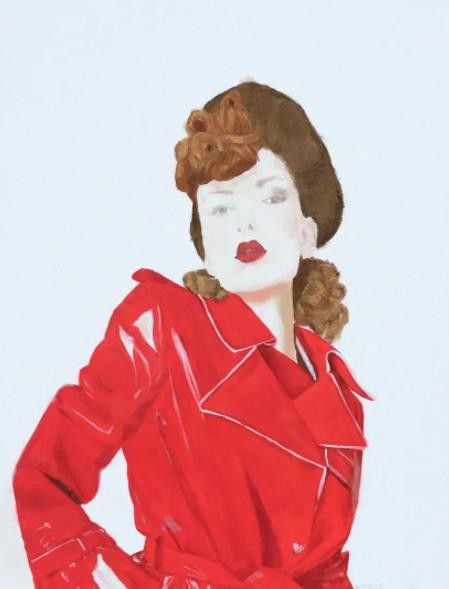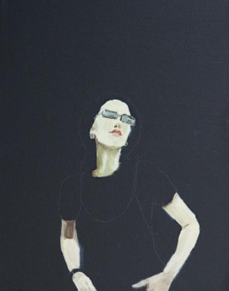 再见吴老师是在她的工作室,带着她的新作,有些陌生,有些意外。我对吴老师的作品认知还在女人系列。女人系列这组作品人让我印象最深刻的是画中人的服饰,我记不清这些女人的五官,看不清她们的面貌,印象中只留下浅浅淡淡的对于画中女人服饰的印象:在黑色的背景上,她们的形象大抵是静态的,平面的,无声的;难以仅仅通过画面揣度人物的性格,但从人物的姿势中对其所处的时空能有个大致的猜测。但就是这样略带雾感的女人系列在某种意义上描绘了一种类型,一种当代语境之下语焉不详的某种女性形象。