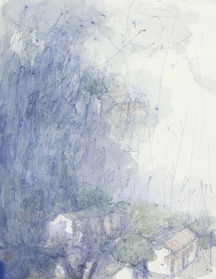 艺术的本质是自我表达的一种手段与方式,选择何种材料、进行何种创作都只是一种自然的生发,不同的材料也往往会唤起艺术家不同的表现体验。刘明波通过圆珠笔来寻求“破”的契机,画面中形的松动与重构却仍保留着那份审美上的朦胧感与纯粹性,虽是粗笔随写仍不经意间透露出那份高雅宁静,那种对生活的热情,对物性的痴心探究。画为心境,语义的表达并不受到语词的限制,艺术家仍以他特定的艺术之语法将对风景的感受组织进入动人的画面。