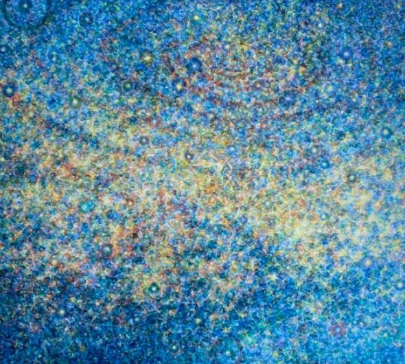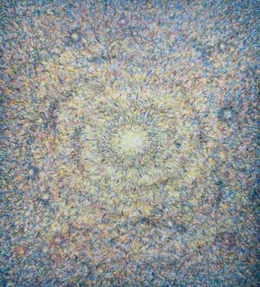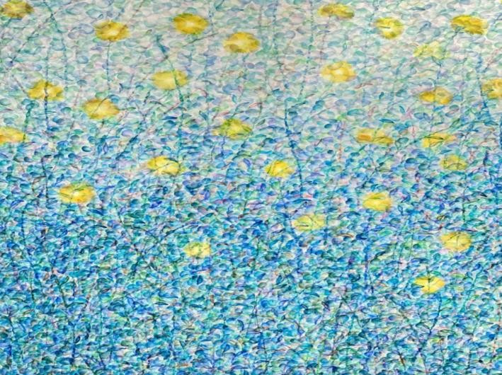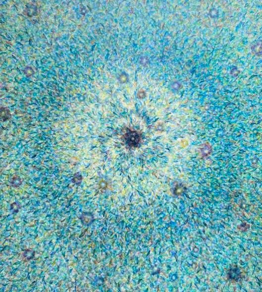 耿端对「点」的深度探索,以及他对自己笔下「点」的图腾式使用,绝非简单重复,而是艺术家几近仪式感的虔诚自省,充满了对世界、宇宙、和花朵一视同仁的关照;对宏观世界的审视;和对微观世界显微镜式的观察。