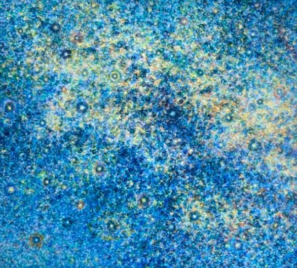 独特的童年经历,自然地浮现在耿端的作品中:独特的绘画技巧和诗化色彩,令画面充满诗意和力量感,甚至在「宇·宙」系列中,呈现出宛如宇宙般地浩渺星河,璀璨深邃。