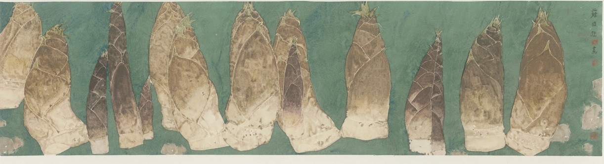 在苏国强看来:“这些在我生活中的花花草草,或蔬菜瓜果,每当他们在打动我的那一刻,我就会把他们搬到我的画面中。这不仅体现出我的审美追求,更能反映出我的生活状态。一种自然、简单、朴实的生命状态”。寻常物象入画而涌动着艺术的精神,即司空图所形容的“天风浪浪,海山苍苍。真力弥满,万象在旁”。没骨之象,蕴含的是中国画的精神,传续的是美的理念和意韵。