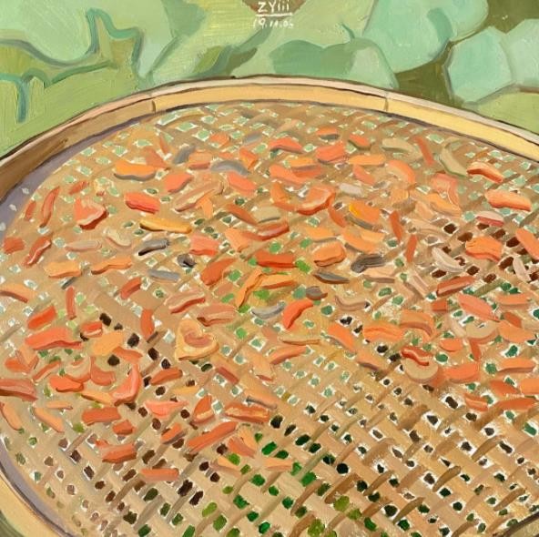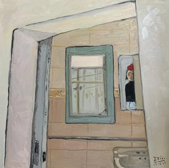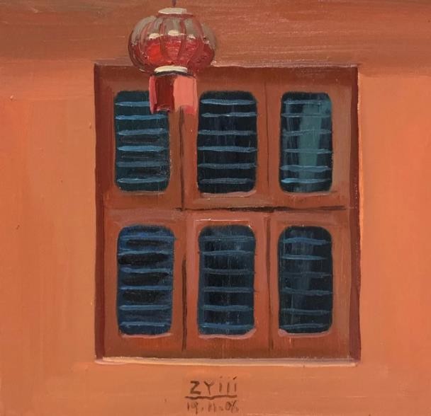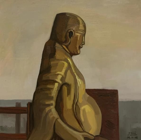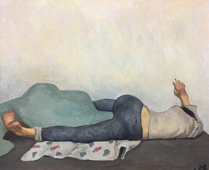 艺术的道路必然会经过艰辛的厉炼,特别是对90后这一代年轻人来说,会面临更多的困惑与迷茫,时下“躺平”是一种无耐的选择,能保持稳定的状态坚持创作就是幸运的。子益在读研期间曾经做过多方探索,对摄影、音乐、诗歌都有浓厚的兴趣,这些都会潜移默化地进入她的画面。我欣赏她画面中的概括单纯,简约的画面构成又不失丰富性,呈现出年轻人独特敏锐的视角,做到这一点很不容易。子益是善于观察思考的人,愿意敞开自己拥抱平凡平庸的世界,在现实和幻象之间寻求形而上的平衡,这得益于她研究生毕业论文研究的对象-意大利画家卡索拉蒂对她的启示。绘画是另一种形式的思考,思想是前行的动力,好的绘画总是透着作者无言的思想,因此才显出作品耐人寻味的魅力。子益的作品中已然显出这种苗头与趋势,在生涩中升起一道清新的光芒。