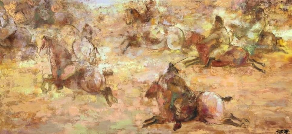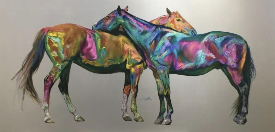 观人者,刘尽航,闻人如名,区别于他早期的传统古典主义写实,又或超写实。如今尽航的孔雀系列和马系列,更巧妙地诠释着他自身所携带的性格和气质。出身于学院的他无疑继承着“学院派”的脉络,又不拘泥于“学院派”的符号和壁垒。从构图的多变、用色华丽大胆又蕴藏着古典厚重,运笔大气而不浊,巧而不腻。画面层次淋漓多变,和泽有神,意境或梦幻绚烂或平淡朗逸,清雅幽丽,有着来自东方本源的文人气质,也有当代观念的个性腔调。刘尽航的马系列作品,画面的冲击力在直观上无疑是现代主义的艺术表现形式,介于具象和表现之间。似乎当代艺术与传统绘画直接一直存在扑朔迷离的纠葛,在逐渐走向融合的趋势下前者仍保留了足够的影响力。一方面,当代艺术中新意识、新观念对传统绘画艺术在当下的发展造成了冲击。更为先锋、开放的思维形式进入到了绘画领域,使绘画艺术在表现方式上拥有了前所未有的自由空间。各种新的探索、新的研究都试图在个体的艺术活动中创造着新的价值观。另一方面,当代艺术以革命性的解放形式也在改善着传统写实绘画,带来了新的可能。