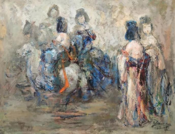 李保华兼具写实与表现的绘画作品中,提纯传统文化符号,以个人化的表现手法,历史感的色彩,加以现代绘画元素,形成了个人的绘画语言。作品色彩沉稳,源于晋唐时期的壁画,同时也借鉴了唐三彩的颜色组织。对于灰色调的把控游刃有余,不失惊艳。人物造型方面,以唐陶俑的形态为基础,加入当代审美之意趣,用中国画没骨技法,使画面人物灵动柔美。光线的削弱、打破和重建,强化自然性和精神性,在西方油画的框架中融入中国传统美学,形成自己独特的风格。