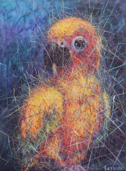 Lewis.Liu(刘尽航)一个带着腼腆的小伙子,那是一个才华横溢并杰出的年轻艺术家。他的作品中有着强烈的民族艺术气息和灵魂,他高超的绘画技法令人惊叹。作为同一样一个描绘自然生态绘画艺术创作的我,非常期待这位年轻人他有着更多优秀的作品。