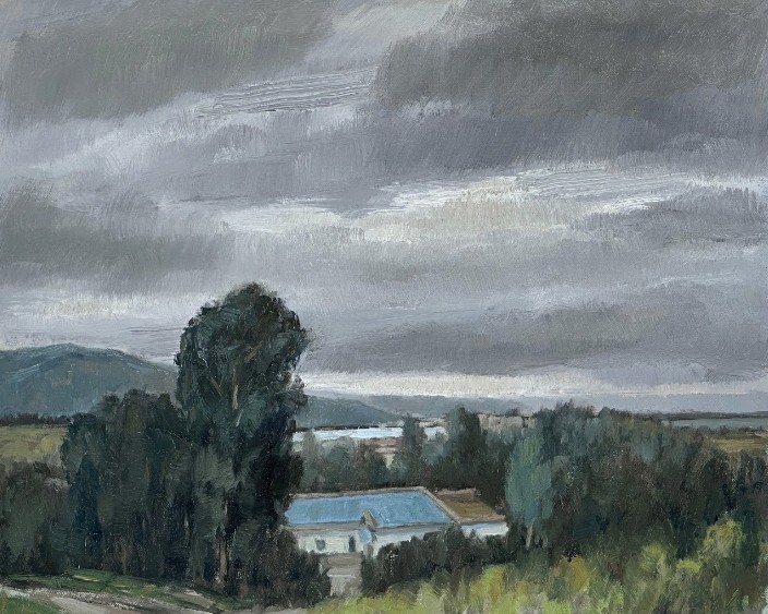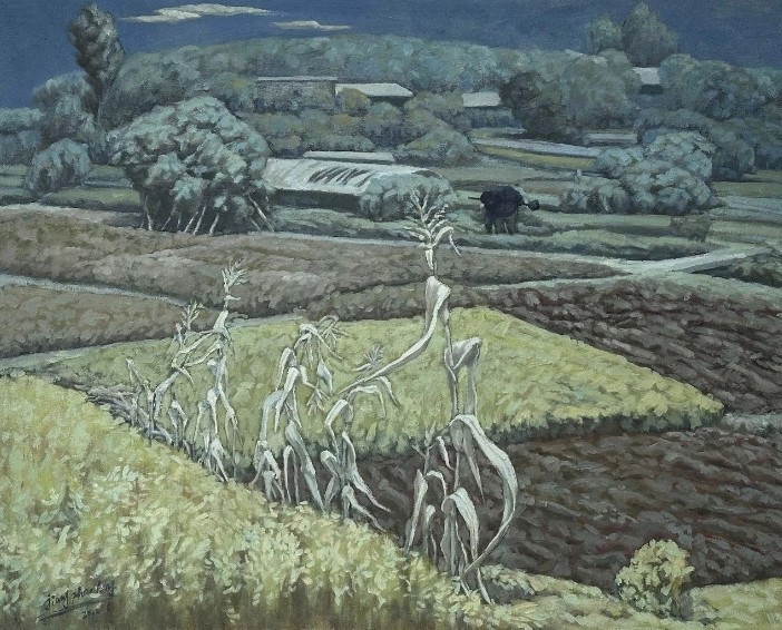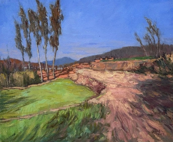 蒋召鸿的工作室在滇池边,大多数情况下他会在工作室画窗外的风景,虽然是写生,却是在工作室里进行,这是一种特殊的绘画体验。当然,室外写生也是他的工作方式之一。无论室内还是室外,风景成为他作品的主要内容。有“令人愉悦的恐怖”,也有“田园牧歌”式的,还有“地方志”的方式及少量的“工业景观”等等。面貌丰富,风格多样。