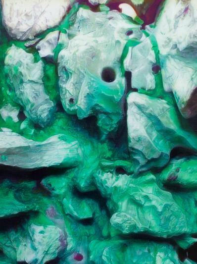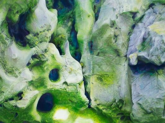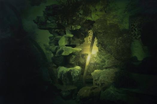 无论是娇艳盛开的海棠花,还是被青苔掩映的假山石,源于宇宙诞生之初的能量仍在其中流动着。这个时间尺度之大,使一个人的生命旅程看起来只是那一瞬。时间,是杨勋绘画观念中最核心的词汇,无论是时空之眼,还是肉身之眼,在宇宙的长河中都是如此短暂。因此,“物之哀”,是潜在于其思想深处的生命意识。恰如此,杨勋要深入刻画出生命的灿烂,塑造出生命的尊严。杨勋画面中的光,从外来的剧场化的探照到均匀的平光,再转换为兀自发亮的“灵光”,杨勋的艺术漫步是一个“迁想妙得”,从外走向内,从观走向想,从体走向悟,从肉眼走向心眼的过程。