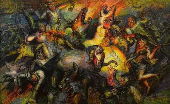 在这段长达50多年绘画的历史中,我们可以看到罗中立不同系列间的变化,看到艺术和历史语境的变迁。“重返起点”既是对罗中立个人创作的倒叙,又将艺术重新返还回产生和激荡它的历史之中,试图寻找出个人和历史、艺术的上下文之间的关系。这段巡回的历史,罗中立艺术50多年间的进与退,成为展览“重返起点”的理由。