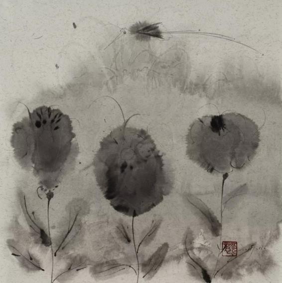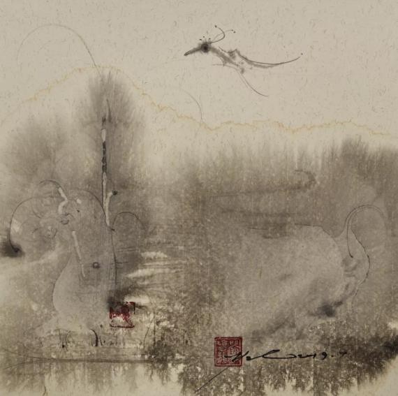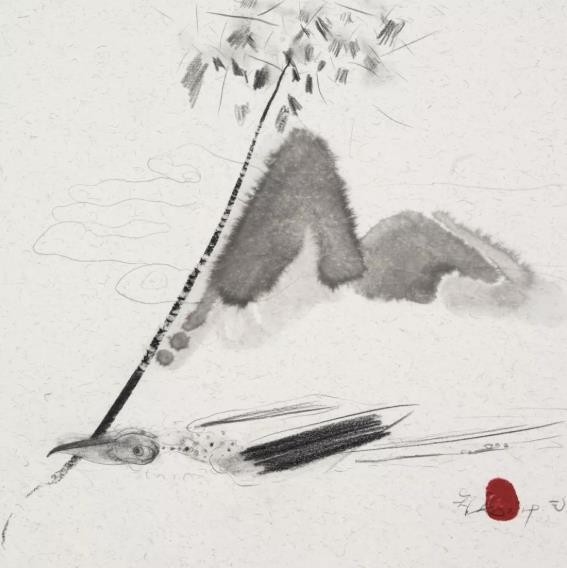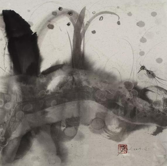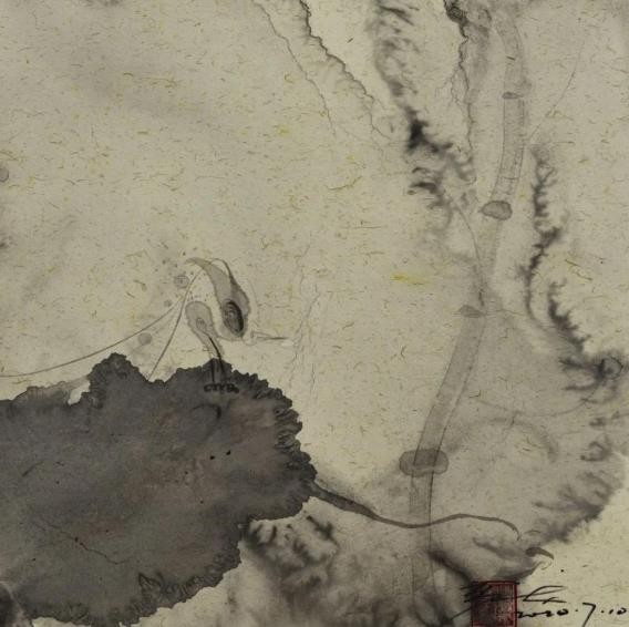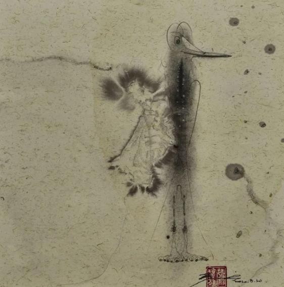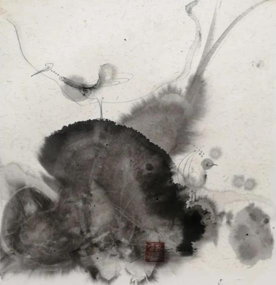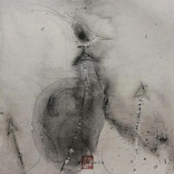 “春秋鸟”中鸟的造型,会让人想起仰韶文化和马家窑文化彩陶上的那些鸟,智龙强化了神似的精神继承和文脉上的保留,并赋予了更大的自由活力和想象。这些构成了严智龙“春秋鸟”水墨艺术直观的特点,他还年轻,他还将艰辛无休止的创作下去,但我坚信其探索的价值对未来中国文化的贡献。