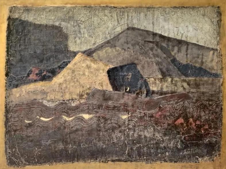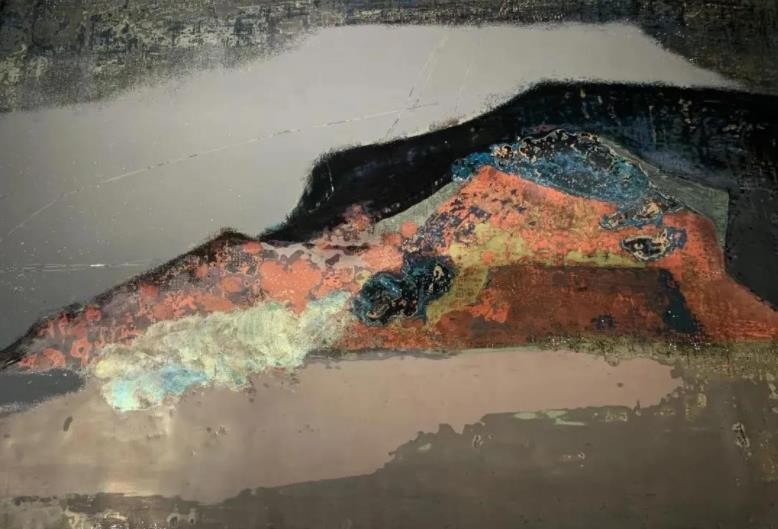 朱莉燕绘画中的山地多为客观认知后的主观造物,那里隐含着一个自然且充满生机的精神世界,可以感受到自然灵性与人心性之间的交流与互通。其间,她更加注重施形赋彩,即将所谓的现实观察充分,在观念上更加强调精神性和符号化,从而完成一种视觉语言不具体视觉意味多义的艺术倾向。她的《山无境》系列更像是她西行考察的的记忆标本。