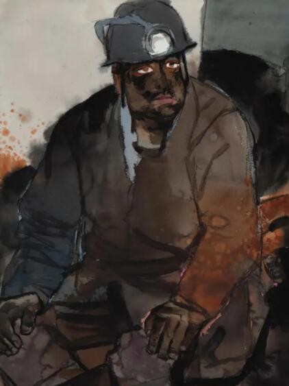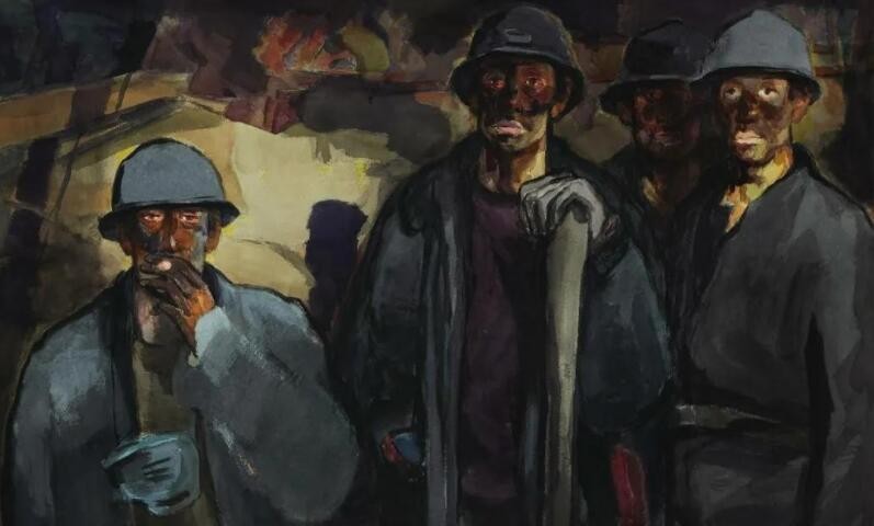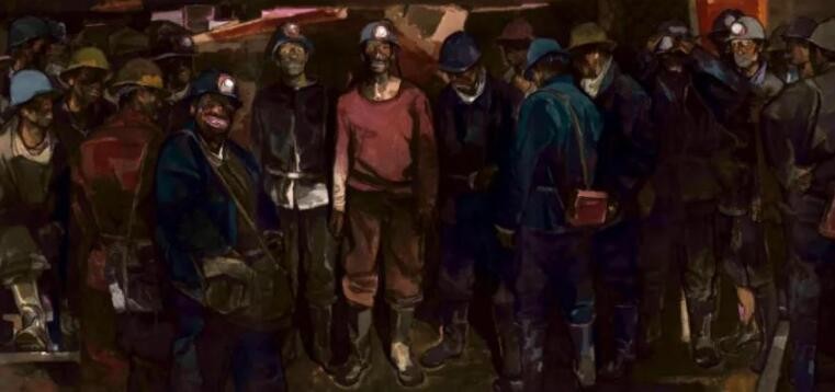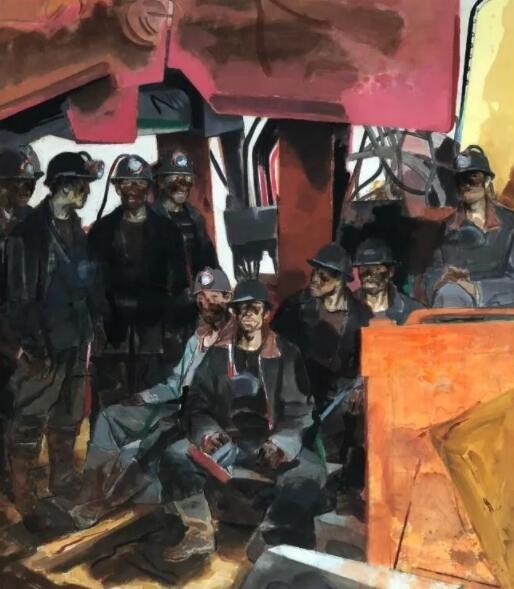 我想从“形”、“意”、“光”、“色”几个角度来简明的分析周刚先生的作品,这是绘画传统中对视觉化形象的品评角度,在每一幅作品的营构中,周刚显然把握住了画面结构的“形”,也就是善于在直觉的瞬间构成画面形象的分布。用点、线、面形成画面的韵律,在这方面,他的绘画是不断发展的,前些年已有对画面“形构”“韵律”的研究和探索,近几年更是熟练的控制整个画面的生发趋向,在一些大尺幅的作品中,他也同样创造出不同的“形神”“韵律”使得作品如同多声部构成的交响乐,产生多层次多角度,但又协调的和声,他的作品中有许多矿工生活现状的精神表述和感人的形象,但那些形象不是客观写实的空像,而是得于主观表现的意象。他用了很多年去矿场体验生活,感悟人性,现场写生再造化。基于人性的感受加上酿化,使感受转变为感觉及认知和修养,因此他落笔主观,画面上的形式语言十分丰富,构成每一幅作品独具特性的意态。