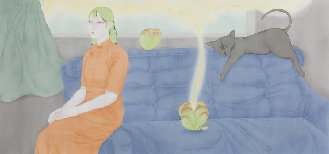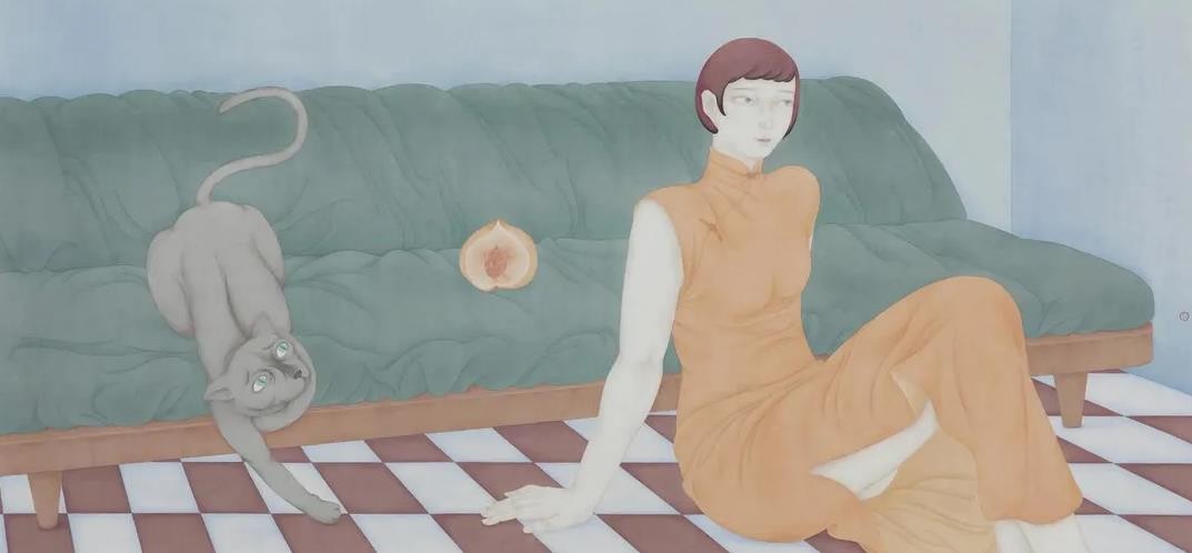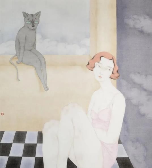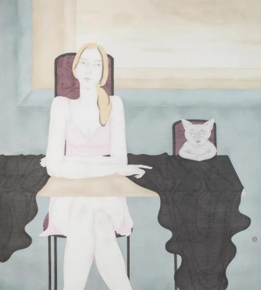 刘派画中的女人有思想、有情趣、有生命力,身体纤长、匀称又丰润,充满力量却又略显柔弱,仿佛一朵即将盛开的鲜花,把她优美的姿态慢慢展现给众人。她画的女人身旁一直有一只没有毛的黑猫,这是女人的陪伴,是女人的影子。猫和女人一样,她们都是高贵的、 骄傲的,同时带一点点神秘感。漂亮的女人,漂亮的猫,静静地躺在某个角落,高贵又寂静,这就是“刘派的房间”。