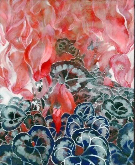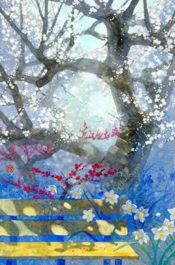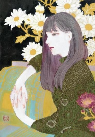 “物语 ”一词的选择似乎将饭田文香的绘画图像更近一步表述她内心那敏感而又细腻入微的个人情绪;如同在梦幻岛之间呈现出的若干个奇妙空间,身临其境之时,确使得观众悄然游离于现实景观和虚拟世界的角色之间;由画面当中传递出的人物形象与各类花卉植物,成为我们进入她所塑造出的幻境一般世界中的一条隐秘线索。地理文化属性的特质,也将这条线索更紧密地串联画家的挚诚心声。