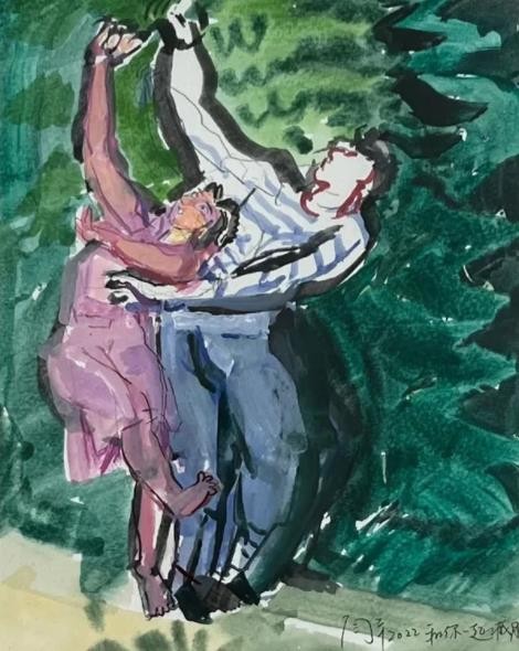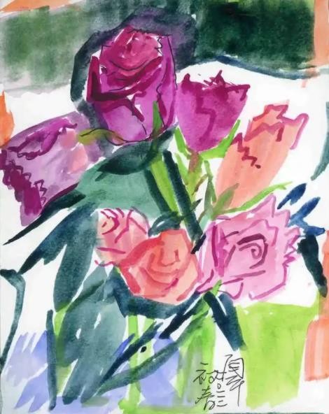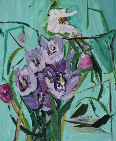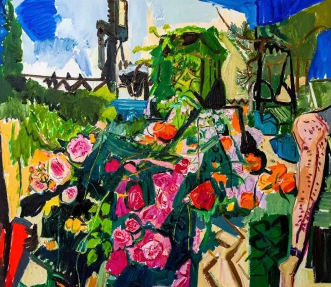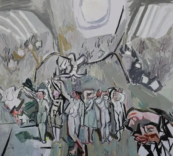 如《开到荼蘼的花朵》与《倾听莫扎特》中,蔓延向空间中的枝蔓与外部空间的形式勾连有力的传递出艺术家赋予花朵的精神能量对外在世界的浸染。艺术家有意的压缩空间,在有限的深度中将力量辐射于画面前方,形成直击观众的强烈体验。与此同时,在这批尺幅不大的以“花”为主要题材的作品中,艺术家也注入了更多试图打破整体结构的随机笔触,尤其是带有身体感觉的行动性笔触,突破了仅仅是视觉的营造形式的秩序与理性。