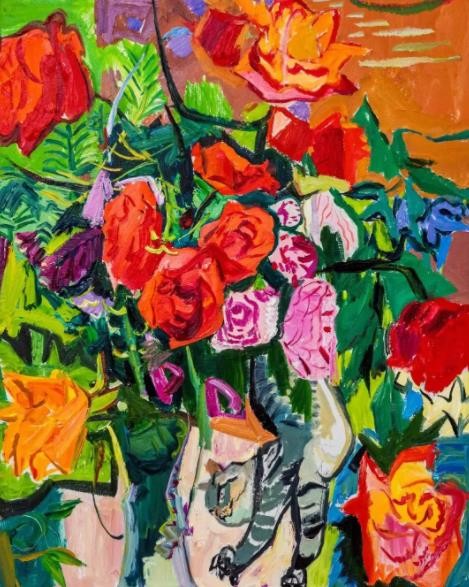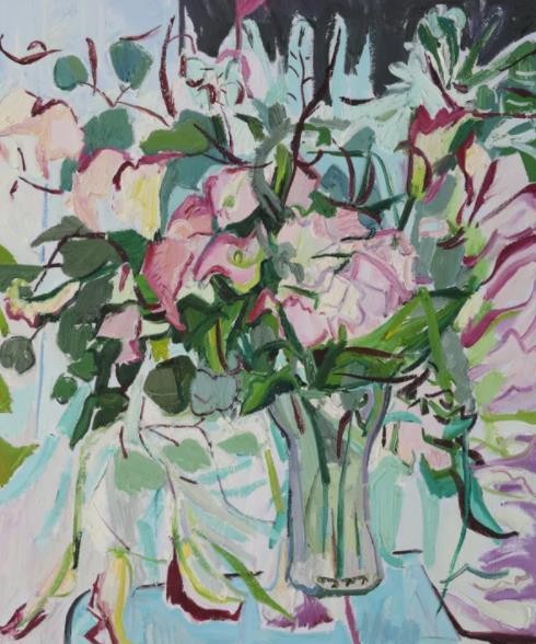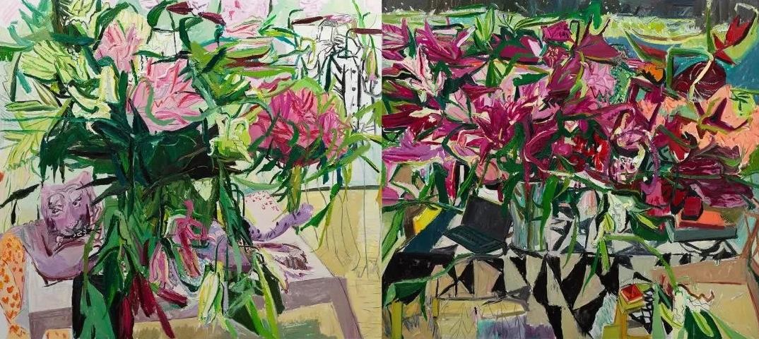 内在的表现性与融贯的形式所构成的整体性始终是绘画艺术的内在品质,闫平的新作呈现出出的依旧是上述二者最切恰的统一。艺术家笔下的花勃发恣意的生机,在构成上远离中心的离心力与花朵主体外部的空间形成穿插的力量结构,去中心化的张力并未强化画面的力量感,在意外的丰富性中重申了对象的心理形象:蕴含于复杂关系中的力量溢出。