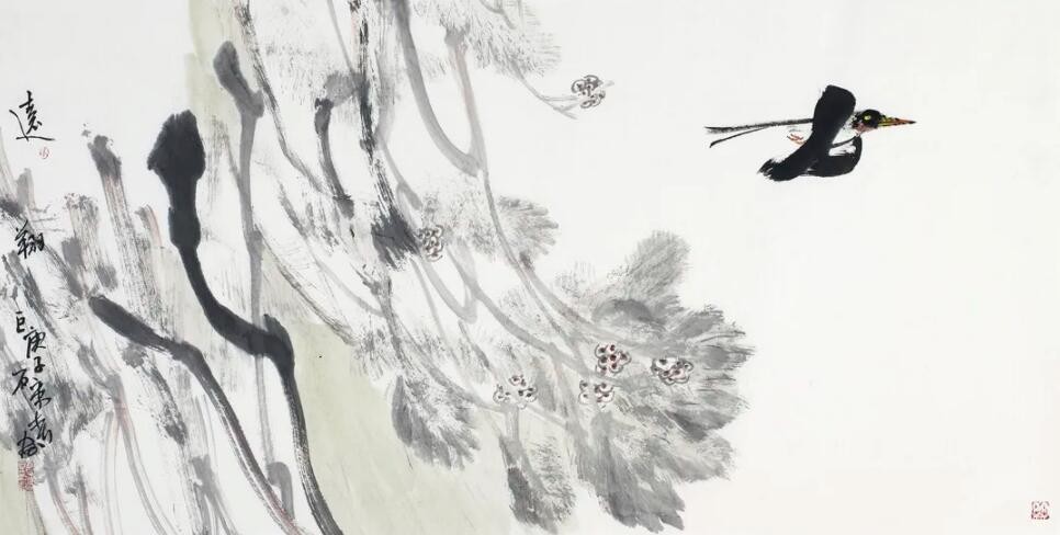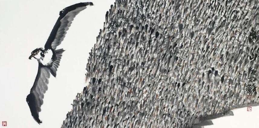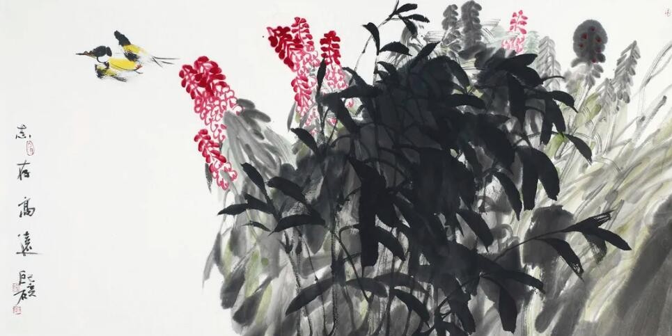 当今的花鸟画界,不缺富丽精致的工笔重彩,亦不乏纵横淋漓的大写意风情。在审美高度疲劳、图像异常丰富的信息化社会,能以简驭繁、繁而有序,且自出心裁的花鸟画作品是难能可贵的。