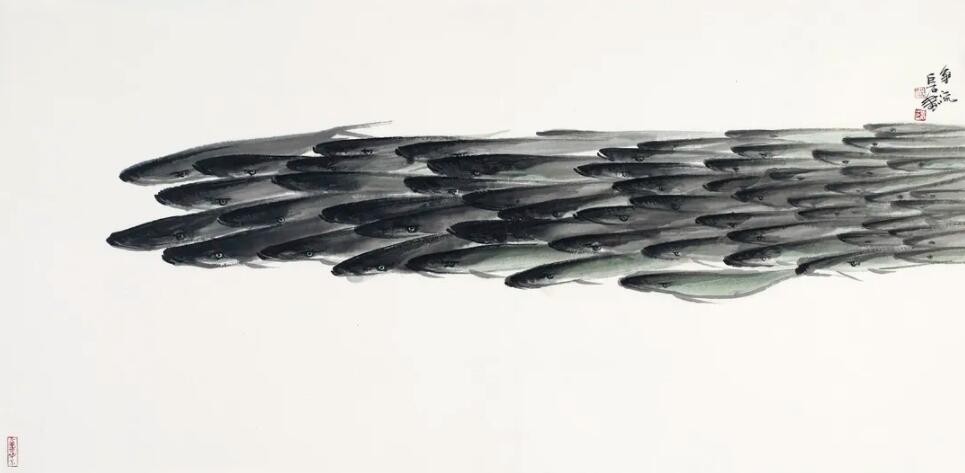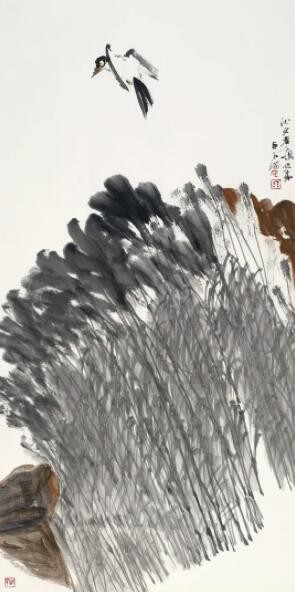 巨石的画风是极简的、也是繁密的。或以寥寥数笔,宁息观者心中燥气;或极尽繁复,却能笔次分明的反映造物之美。正如邵大箴先生评价的“在巨石作品面前,我们会有一种轻松、愉快的心情,他的一幅幅画面,把我们引向大自然,与天地间自由生存的鱼类、飞禽、树木和花草交流,忘却生活中的种种烦恼与浮躁,心境得到舒展。”