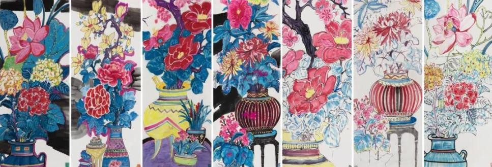 书法、文人画、通俗文学、明清版画、敦煌壁画,甚至评书、电视节目都是其灵感的来源,她通过描绘或仙怪传说,或侠义人物,或动物玩偶,或飞鸟虫鱼,来构造自己笔下的大千世界。