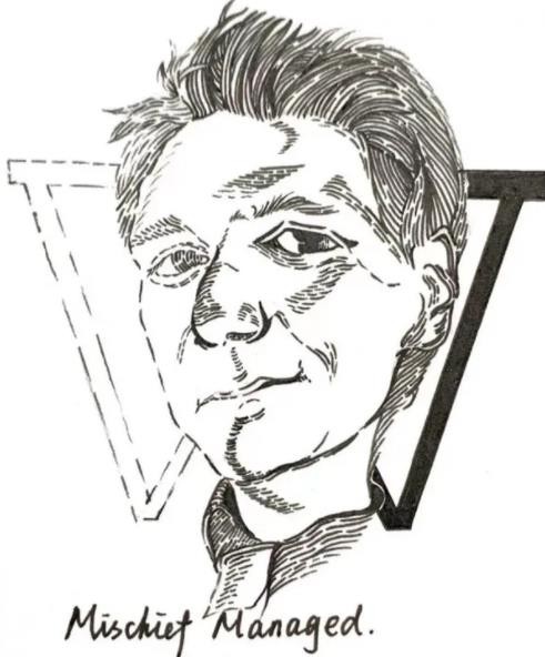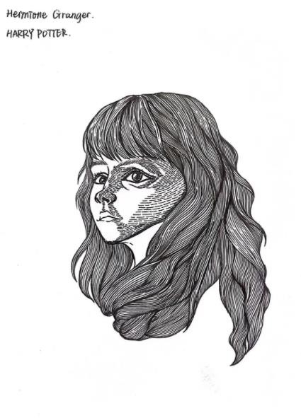吴思闻也是两面的,她的审美与思考具有矛盾的对立统一。她有同于同龄人的天真,也有异于同龄人的深度。《哈利波特系列》《霍比特人系列》等以黑白色调流畅线条绘下童话般的可爱人物。而《局外人》《笑面人》等作品则有了阅读经验和人生阅历带来的冷静与哲学思考:世界的天真在现实荒谬和无奈的夹缝中难以喘息。