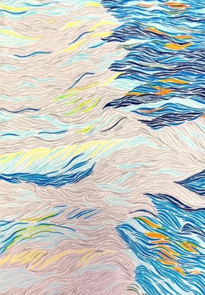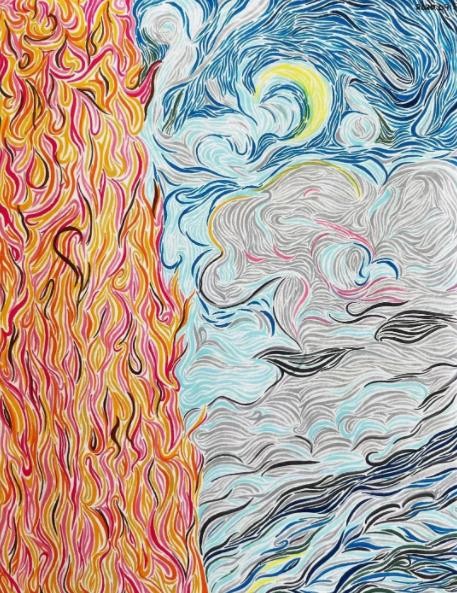我最喜欢的画家是梵高,我在作画时,总觉得他就在看着我。他后期的作品中即使是明亮的颜色,也总是充斥着悲伤的色彩,但依然充满希望。我对梵高表达敬意的方式就是以带有梵高感的线条表达情感。在这些年作画的过程中,我发现线与线之间的间隔和角度有千变万化的意味,赋予了画作不同的质感。即使某些作品想表达的思想是沉重或者悲伤的,在间隔中依然可以感受到一些艰难地喘息,而这种空气感反过来为画作带来更多的生命力。