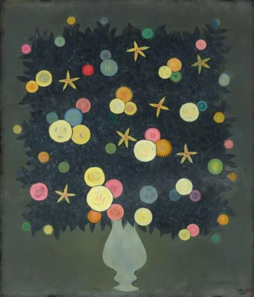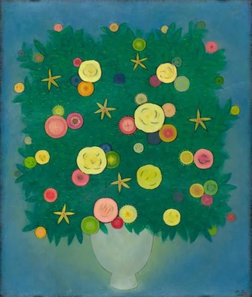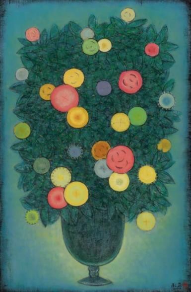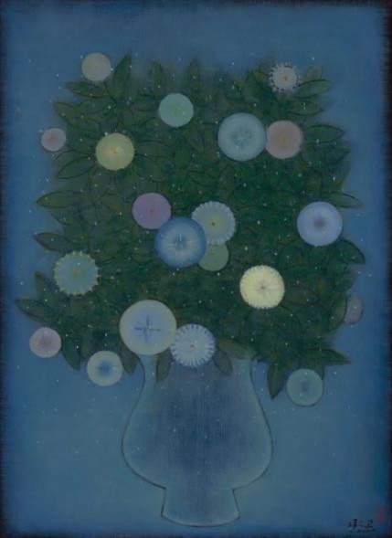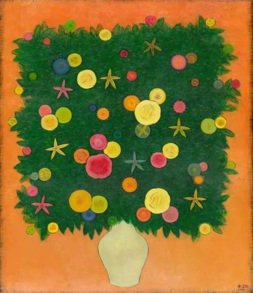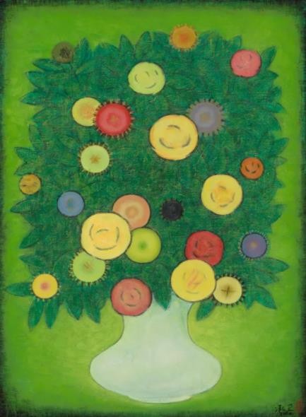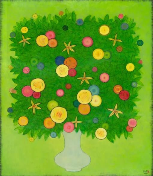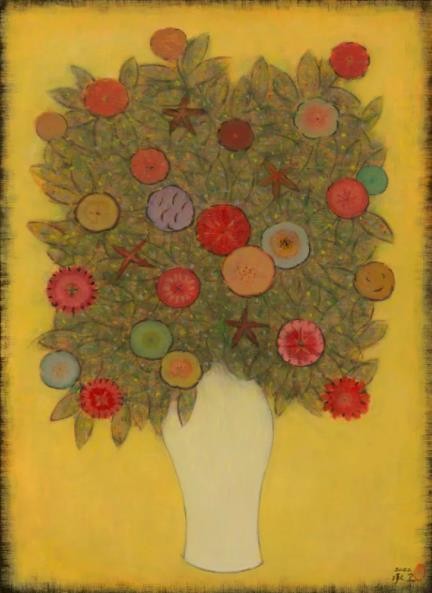 生命之花由最初父母亲带给我的创作灵感,然后受黄宾虹傅抱石的笔墨影响,也受西方马蒂斯、 夏加尔和后印象主义大师们的线条和结构影响,后逐渐往东方神秘主义领域探索,在宗教,壁画,唐卡,星宿等方面不断深入研究,创造出具有东方神秘主义的新画面。生命之花用重叠的曲线和绚丽的色彩 不断在肯定与否定当中寻找着平衡的能量之美,从宇宙星空,万家灯火,细胞基因,再到四季交替,这些心中的花进行着微妙的进化与演变,逐渐绽放在你我心中。