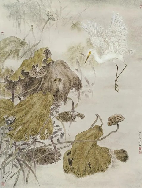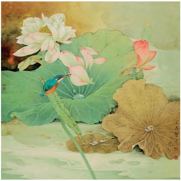 小民继续求学,问于友,问于师,复去北京,于中国人民大学学习画论、画史。知画理,亦知宋元明情工笔画之历史,心中犹明,遂悟焉。继之,画又一变,其用笔更稳重,赋色更深沉。作画,色墨见其厚重不易,于薄中见厚重犹不易,小民能之。小民故年轻,其工笔花鸟画已在诸名家之上,至少说小民画名不若大名家之大,然其画绝不逊之,乃在其上,假以时日,必能得识者公认。