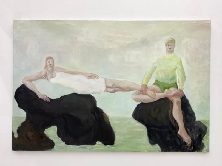 《浅空飘浮》群展中七位艺术家的作品案例,既是对于当代绘画的一次直觉性展示,也是对于当下绘画创作思维的一次快速扫描。今天,任何一位敏感的艺术家,都可能在某一天清晨的梦醒时分,感到卡夫卡《变形记》中格里高尔变成甲虫的的那种错愕感。在流量经济、全民直播、娱乐至死、消解精英的媒体时代,“人”的形象与“人”的定义正在发生怎样的悄然变化?是直播间里搔首挠姿的带货主播?是综艺节目里嬉戏玩耍的明星艺人?是上亿部智能手机里的自拍美颜?是上海上生新所或是广州文立方的拍照打卡?是表象与灵魂分离的“新人类”?还是“景观社会”中异化的“后人类”?我们无法简单给出答案。葛辉画中人物融化扭曲的肢体戏耍般相互缠绕、张瑛笔下的无名肖像自幽暗的背景中向观者投出异样的凝视,这些对于“赤裸生命”与“异在”生存方式的展示。都给了观者超越语言和文字的震撼回应。通过对这他们绘画的深入观看,我们可以重新审视并认识形象,重新定义形象以及形象背后“人”的状态。