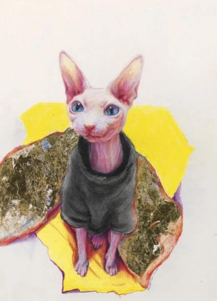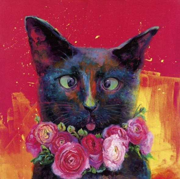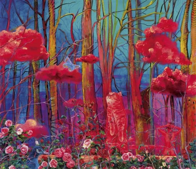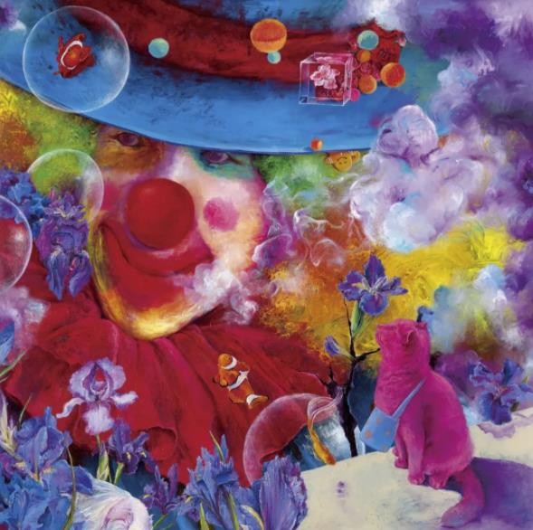 我给人与物的“他”或“她”创作的时候“他们”就是有生命的,就是可以陪我谈笑风生的,我也希望观看我作品的人也能感受到“他们”的生命力!也可以在我创造的空间里得到一丝舒心!比如《我的多重人格》系列作中有一只猫,这只猫的眼睛是好朋友家里的,(但他比较苗条)他像个猴子一样,很喜欢他,帮忙照顾了他将近一个月!可以拆家的,但其实是个憨憨!他也真的是个对眼。哈哈哈哈!超爱他的眼睛,其实我心里也有个憨憨,就是我也想拆家什么的!只是不能,因为要自己收拾烂摊子!这一系列所有的乖乖们都是我内心的那个人格。而《秘境》这张画其实一切是为了画中人,她是一个对我很重要的人,她的出现让我真的觉得看到了彩虹!当时我遇到了人生中很难突破的难关,她给了我无数的力量!我让她在我创造的空间之中,她可以永远无拘无束,永远美丽幸福!