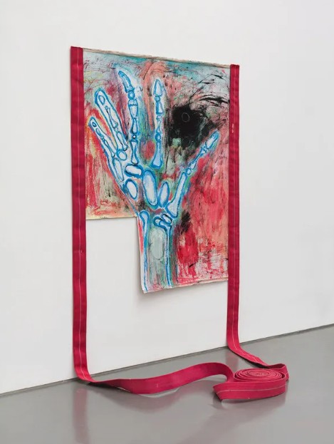 杨健将这一阶段的工作视为建造未来创作系统的星座般的蓝图。它们呈现了他所强调的艺术家的画和画家的画的显著分野。他不仅试图对未来加以预示,更坦诚出具体社会压力下的切身实感以及对无处不在的规训的应对。消防水带在此形成非同寻常的包围,水带的塌软暗示了强力释放的过去与压力充盈的威慑可能,是对某种训诫方式与反抗现场的提喻。