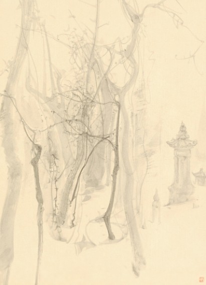 本次展览展出了团队近两年期间以南京愚园、栖霞山等地为写生创作对象的中国画作品,体现了他们对写生创作的不同理解与表达。作为当代水墨画的代表人物,周京新教授身体力行带领学生们以“写生就是创作”为宗旨,通过对自然之境深入细致的研究,不断深入探索笔墨与实景之间的差异与关联,以各自的笔墨主张体悟自然,在教学相长中呈现自然万物的意趣。进而引发这样的思考:一、在实景写生中传统笔墨经典如何为我所用;二、实景与画景、写生与创作之间的关联;三、面对同一实景写生个性语言如何呈现等。