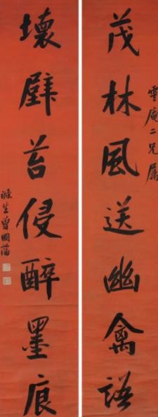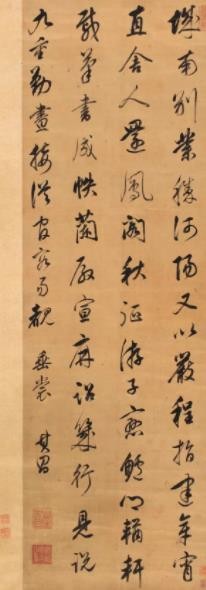 明代书法继承宋、元贴学书法而蓬勃发展,呈现出集晋、唐、宋、元书法之大成的鼎盛局面。到了清代,由于康熙推崇董其昌书法,致使清代前期董书弥漫书坛,成为众多名家顶礼膜拜。本次展览展出董其昌的行书作品,这幅书法笔力雄健而从容悠游,整体姿态平淡和醇厚,是一种绚烂之极之后的淡雅,堪称“不激不厉而风规自远” 的佳作。展出的书法名家作品,还有用笔十分自信的郑板桥,精气内敛的刘墉,沉郁雄浑的曾国藩等名家作品。