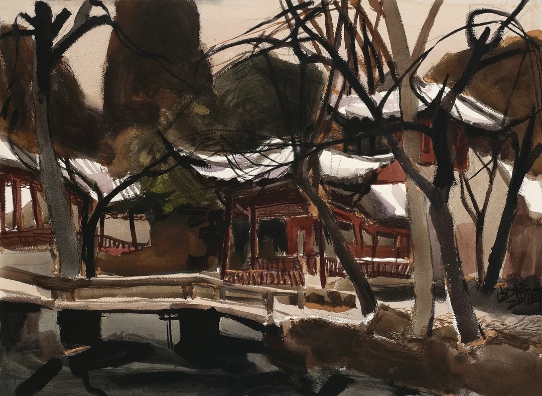 他的水彩作品强调绘画语言对当代文化精神及本土现实主义的深层感悟,超越了事物的表象,直抵他的内心。他的水彩作品记录了他对生活的理解,反映了画家精神状态和生命的真确体验。