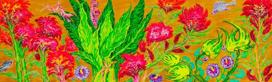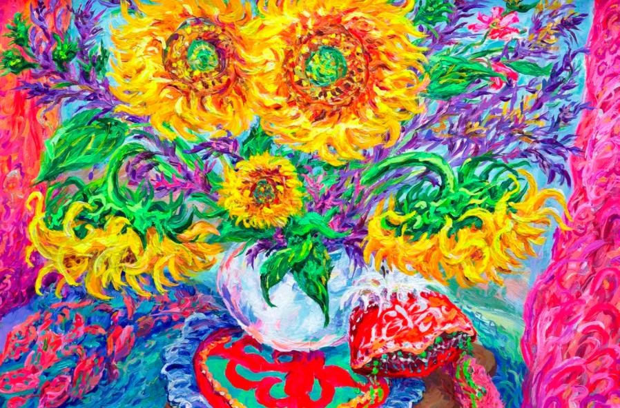 卢云绘画中的色彩和她的性格一样,热烈、纯粹、干净,又充满了打破传统形态束缚的果敢和绚烂,是其对世界自然求知并和美感追求的表达。她的画绘构成并不拘泥于传统的绘画审美,而是将其融汇于生活,在构图的过程吸收了自幼学习武术体会到刚柔并济的精髓和音乐节奏旋律的动感和旋律,并试图以这种多样和谐统一的方式,创造出一种新的构成风格。她的绘画内容多元而新颖。近期主要围绕“人类是这样生活的吗?”“物以传悟”“我将是会谁的新娘?”等系列命题,开展关乎人与自然、人与社会、人与人之间关系的探索以及人类生命意义的哲学思考,进一步升华了其创作的人本意义。