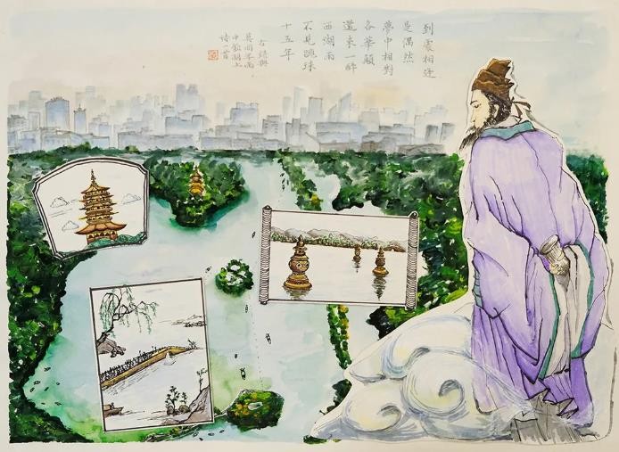 “水光潋滟晴方好,山色空濛雨亦奇。欲把西湖比西子,淡妆浓抹总相宜。”九百年前,北宋一位大文豪写下了这首脍炙人口的《饮湖上初晴后雨》,成为后世西湖最好的广告词。他的名字——“苏东坡”,被深深镌刻在杭州的历史记忆中,成为城市文化永不磨灭的闪光点。2020年第十一届“童画杭州名人”主题绘画大赛以“让文物活起来”为主题,选取苏东坡作为创作对象,就是希望广大青少年学习苏东坡心系天下的家国情怀、乐观积极的豁达性格、百姓为先的爱民精神、思虑周全的大局观念、锐意创新的文化品格。