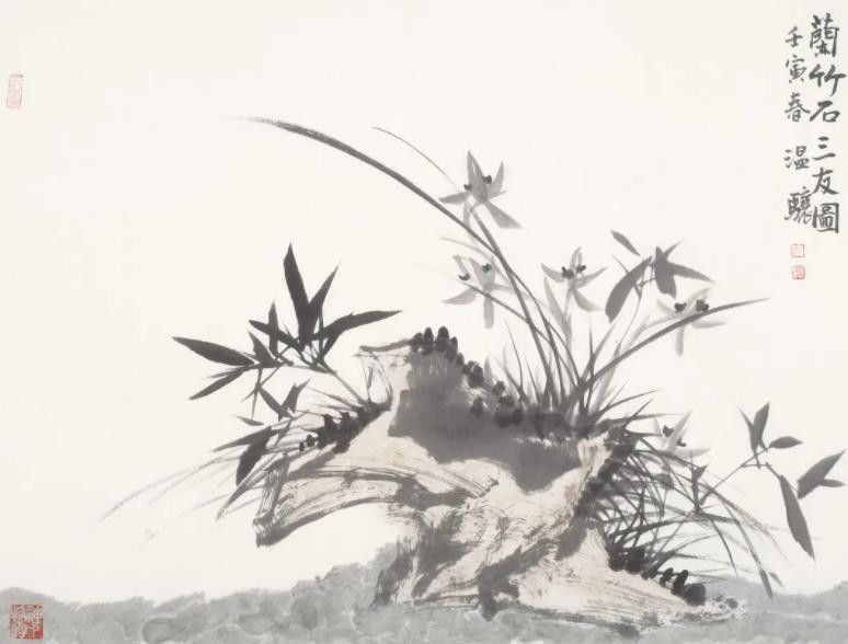 温骧是山水画家,同时是长于“四君子”画家,在中国古代,“四君子”,甚至于画竹、写兰单独是一个画科,并不隶属在花鸟画门下,其实,这本身就是值得研究的中国画学之道。中国人喜欢山水,孔夫子曰:“知者乐水,仁者乐山”,将山和水喻为不同气质的君子,故山水画被称之为“仁智之乐”,是因为山水与人是命运共同体,是山水的境界可以令人“畅神”。中国人喜爱梅、兰、竹、菊,是因为他们是君子,是人格的象征。温骧视“青竹为伴兰为友”,是崇其品格;他画《荷塘清韵》,是因为《爱莲说》称莲为君子,有满塘的清气。他画的山和水是君子,梅、兰、竹、菊是君子,不是君子不入其画,他可以称为“君子画家”了。这就是中国人的审美。我想,无论世界科技化、数字化到什么玄妙程度,这君子的艺术因其人格力量将永远放射着光华而长青。