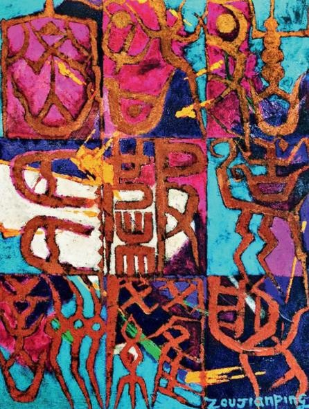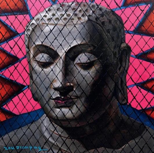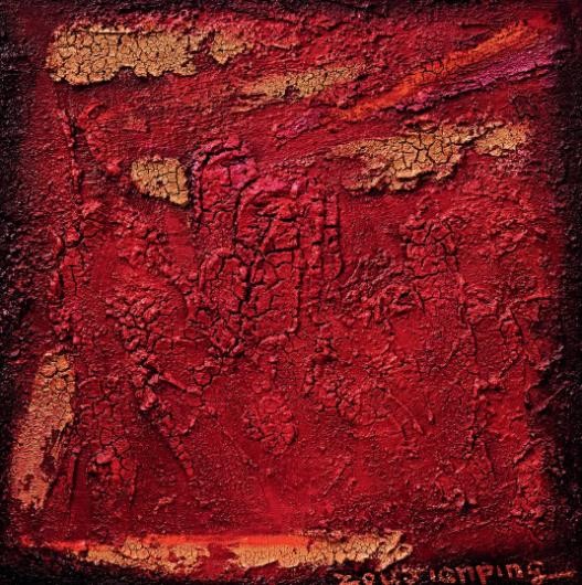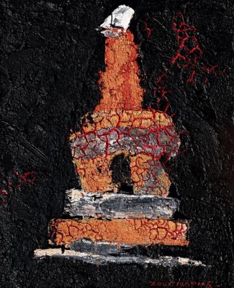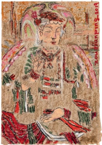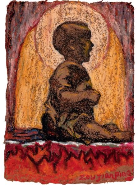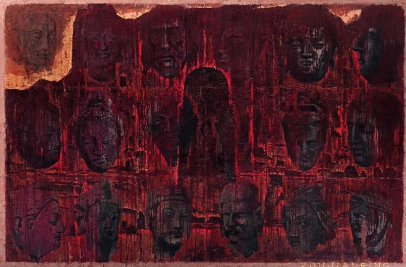当其时,一行人从长沙城过麦积山往克什米尔方向一路折行,虎啸风生气贯长虹。而后数年,邹建平西寻疆域的创作系列以泥沙的形式被呈现出来。泥沙通常也被借指民间和草野,荒漠土则通过对西域视觉的重绘,在主流艺术话语之外,撕裂出肝髓流野的一方广袤世界。邹建平的作品并没有对西域风俗轻浮赏玩,他穿透禅像飞天去垦荒,在时间之沙与文化支流中注目默想,沉淀为一系列斑驳凌冽的红。这些泥沙在邹建平的作品中是西域的魂魄,也是历史的尘埃,是东方的肉身再塑,也是文明的埋骨之地。