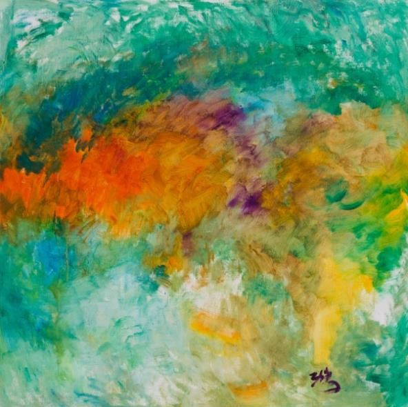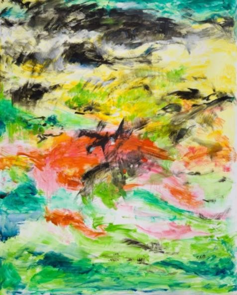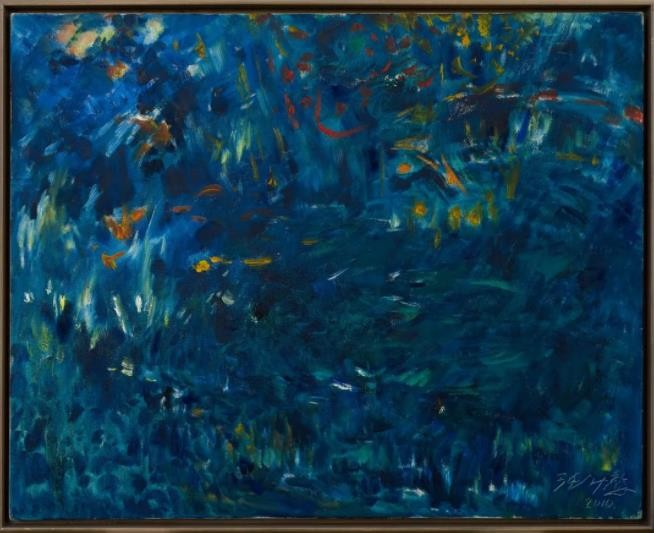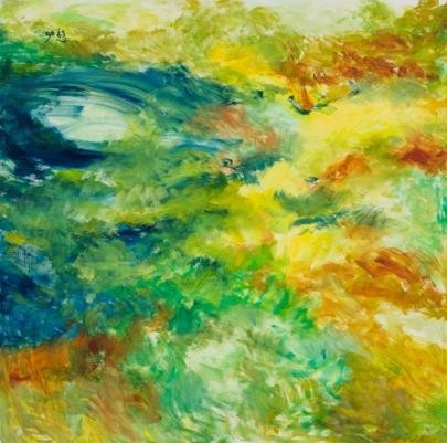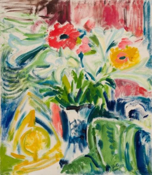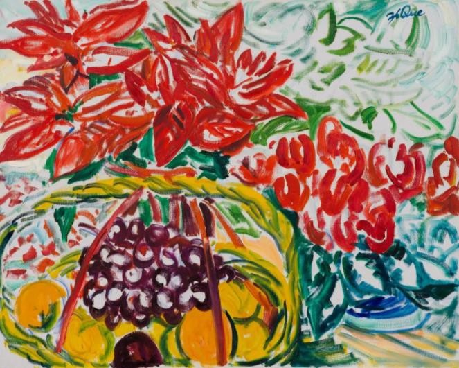 九十年代初,张功慤访问美国两年后回到上海,在继续抽象创作的同时,他还以具象表现画风创作了一系列花卉题材的作品,别开生面。这些作品就是家里的花盆、静物或鲜果的写生,但他不去描绘对象外在的表象,而是写生即写情,直接表现了艺术家对眼前对象们各种内在关系的感觉,这些关系就是超越具体物种的各种形态的排布、光影的捕捉、色彩的搭配和线条的穿插,以及笔触的轻重缓急、构图的深浅虚实等等,是一切精神层面的艺术感觉的表达。