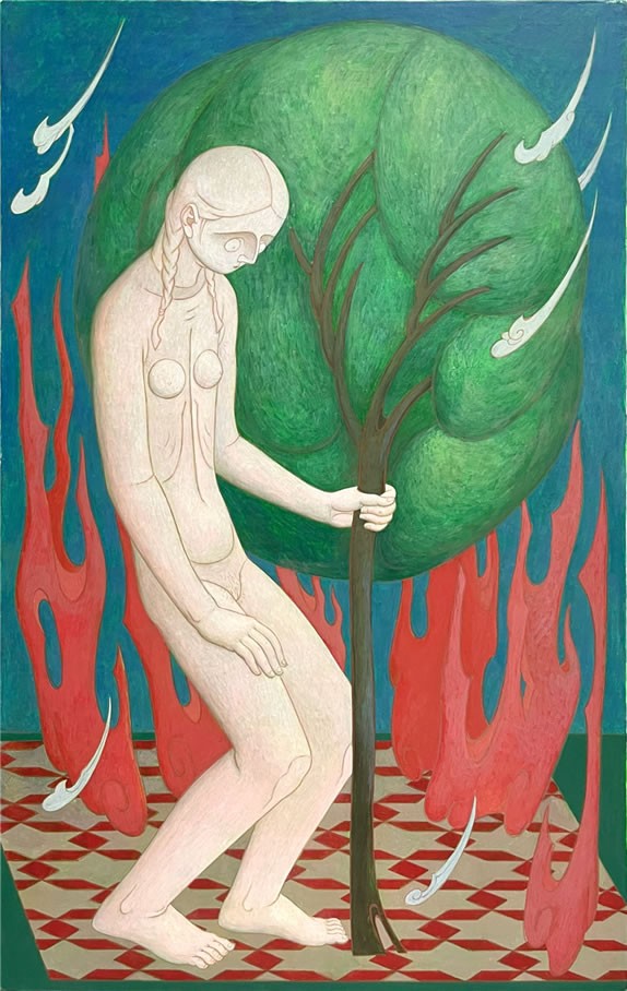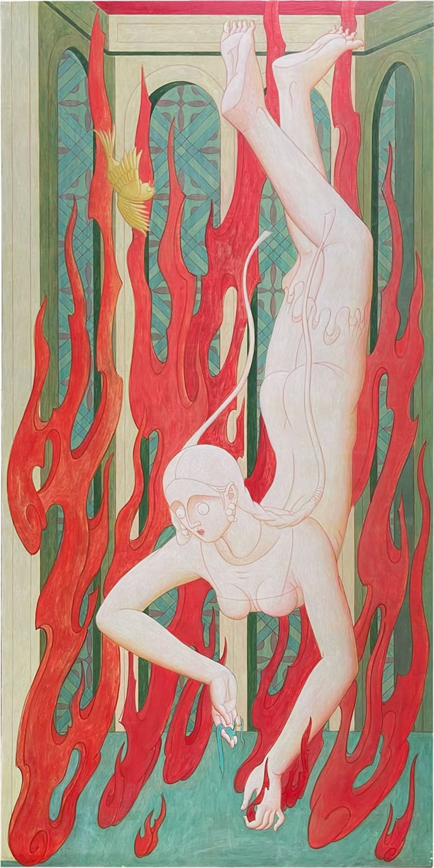 传承与改变是当代的议题,“当代”这个词,又归属每一个时代。油画技术从中亚普及至欧洲乃至世界已有近千年,这种古老技艺在曾经的“当代”,像坦培拉的接替者,起初人们依旧没有忘记那些对神性的精神追求,依旧描绘着无我状态下的神灵,但伴随着文艺复兴的来临,我们对神性的定义开始了转变 但追求没有变。绘画艺术从具象到抽象,从天堂到人间,从祭坛画到超现实主义,始终是强调内在思考和关注当下体验,这个过程不仅是绘画史发展的过程,也是社会人文学发展的过程,更是人类认知变化的过程。