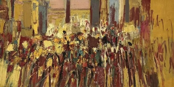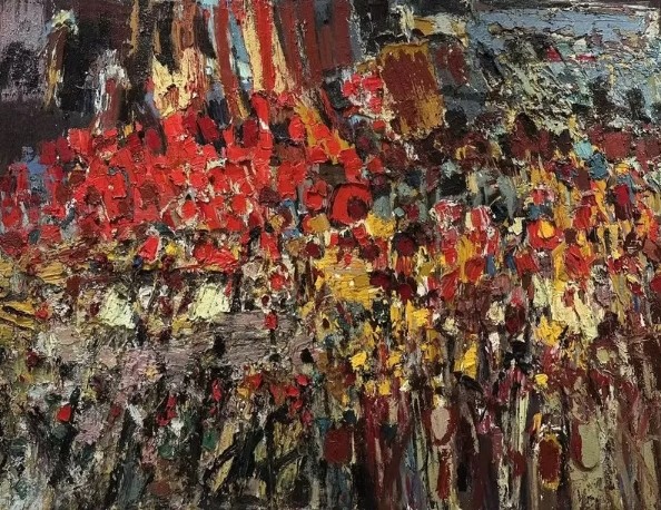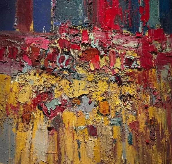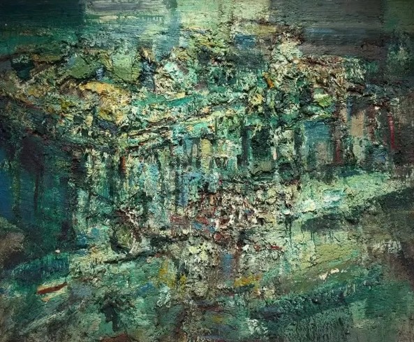 不要探索,不要创造,不要质疑,而是要面对。我再次负责任地说,付智明的油画,那些斑驳厚重的色块,那些近乎疯狂的堆叠,那些遗留下来堆成小山的油画罐,那些从工作室中飘逸散发的沉沉的油彩香味,把时间变成了没日没夜的重锤,并且发出长远的回响。