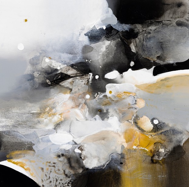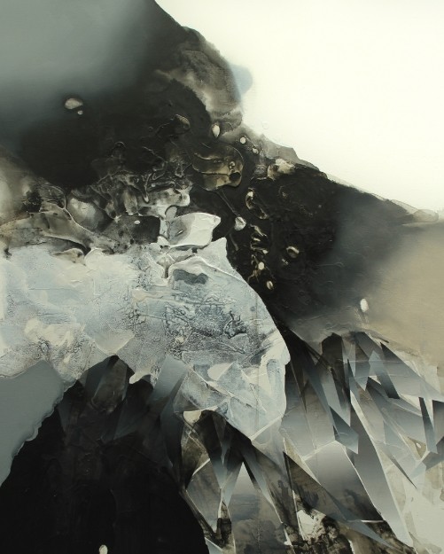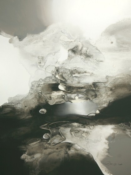 应晶晶的作品始终围绕材料的物质性展开,尤其在《水墨》《水墨·水晶·晶》等系列中,水墨的晕染与水晶的切面形成强烈的视觉对抗。水墨作为东方文化的典型符号,其流动性与渗透性暗合女性身体的隐喻——柔韧、包容且具有自我修复的力量。而水晶的锋利切面则带有工业文明的冷峻特质,这种“坚硬”不仅是对现代性暴力的隐喻,更指向父权制社会对女性身体的规训与切割。两者的并置并非简单的二元对立,而是通过材料的化学反应生成新的美学范式:水墨在水晶表面的渗透与凝结,恰似女性在压迫性结构中寻找生存缝隙的过程,柔软与坚硬的辩证关系在此转化为对性别权力关系的深刻解构。