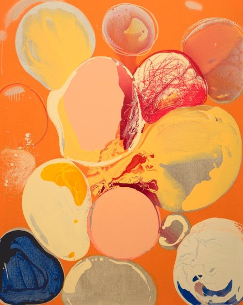 应晶晶的创作始终贯穿对生态议题的关注,是对于自然、科技与女性三要素的关注、其作品《BLOBS》系列的灵感来源,将热爱自然、尊重自然,并对平行运转的宇宙、黑暗物质、星球,与地球上的鸟类、皮肤、矿石、化石、等融合并置,通过卵形雕塑形态封存历史记忆。这种对微观与宏观世界的同时观照,暗合生态女性主义对“连接性”的强调;同时,运用强烈的色彩及极具书写性、绘画感,展现女性作为生命守护者的丰富多彩与活力。