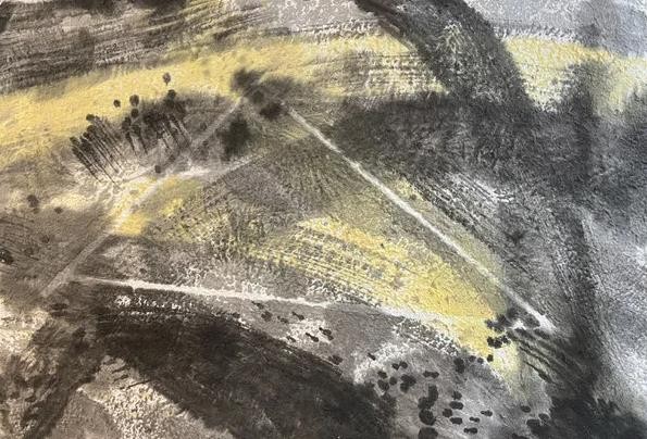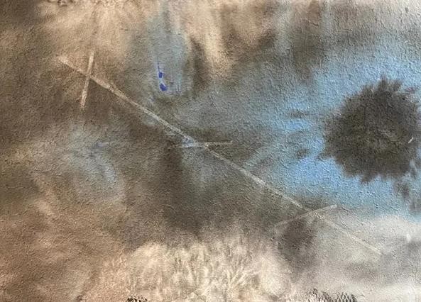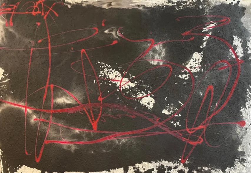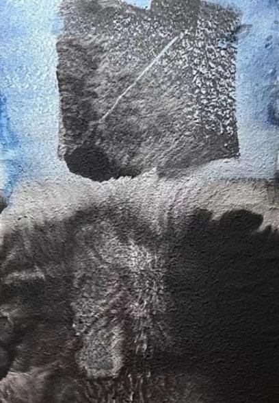 这两年他在珠海的时间越来越多,闲暇之时同学王玉成的工作室成了他最佳去处,这个工作室堪比培根、波洛克,极其自由豪迈之地,滴洒、挥毫、撕 贴、泼墨皆无忌讳;疫情期间,晓强难得一方净土,于是安心研习抽象语言,几十年的视觉经验如海潮翻滚,再如火山喷发,此时间产量惊人!去年某日珠海朋友盛邀皮道坚、刘一塬先生等人珠海东澳岛一聚,席间皮先生论及“第三抽象”以及东?方抽象之不同,李晓强如醍醐灌顶,新作源源不断,他将几何符号与水墨材料穿插并用,感性与理性相互交织,手段和方法愈加丰富。”